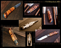Voici une suite à cette customisation. Presque un an plus tard car c'est là aussi un petit custom pour la loterie de WebArcherie mais 2009 cette fois-ci. Comme pour le premier, Jack est dans l'histoire car le bois principal vient de lui. Hélas, ni lui ni moi ne connaissons cette essence (Si Michel a une nouvelle idée car il en possède un petit bout ). Ce dernier est très clair sans traitement et garde des contrastes marqués même sous un vernis. Par contre, le passage d'une huile pour le bois a franchement fait foncer l'ensemble. Dommage. Un peu de Wengé et d'Olivier, un bout de résine bleue, quelques lignes de Padouk pour un n°6 qui devrait avoir sa place dans un carquois.